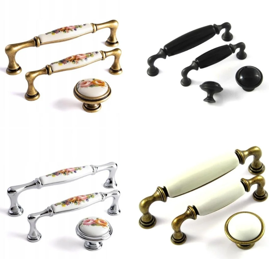 Çiçek Desenli Porselen Kulplar, Sade Beyaz ve Krem Porselenler, Altın/Gümüş Çerçeveli Modeller, Eskitme Detaylı Porselen Kulplar.